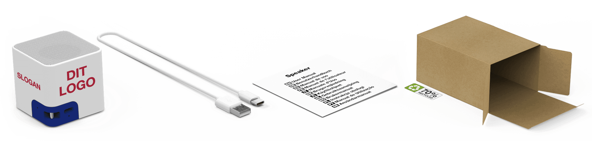 Vores Cube Bluetooth®-højttaler er en fed måde til at fremme din organisation. Du kan mærke 4 sider af Cube med dit logo, slogan, webadresse med mere! Du kan også vedhæfte karabinhage til det nederste hjørne, som fås i et udvalg af 8 farver. The Cube er kompatibel med alle større smartphone og tablet mærker.