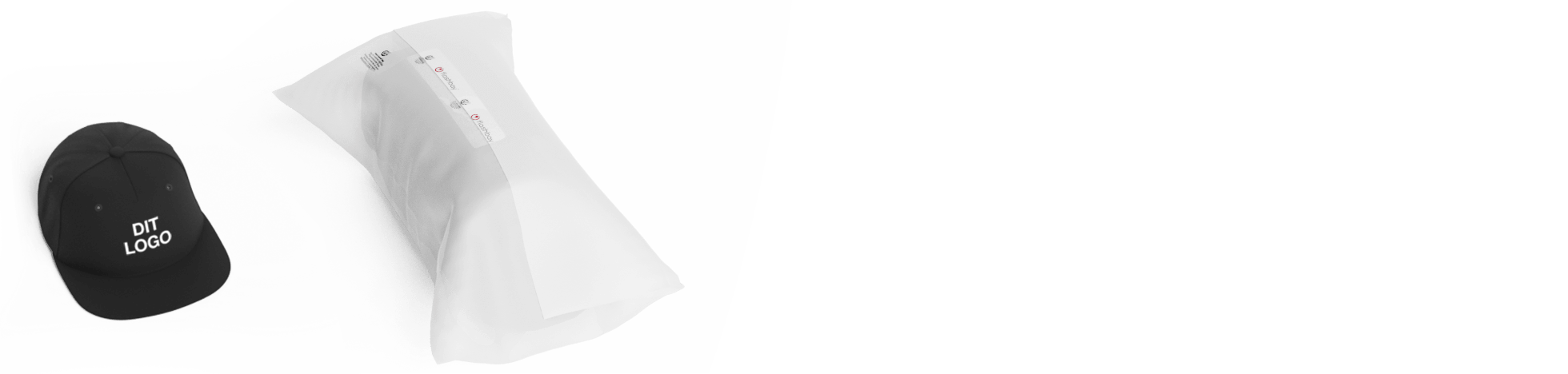 Pakket i gennemsigtige poser fremstillet i plantebaseret materiale - Nedbrydelig og mere miljøvenlig end plasticposer.