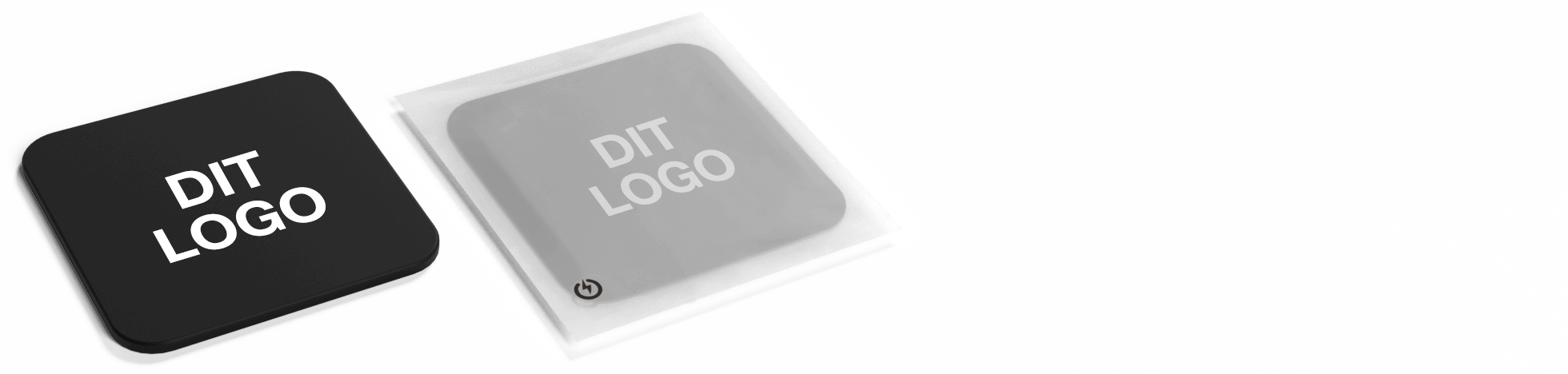 Viser at produktet kan mærkes ved brug af en teknik kaldet ’silketryk’. Dette er den mest etablerede metode til at trykke på en genstand. Vore priser inkluderer altid silketryk i op til 4 farver på alle printarealer. Logo til opsætning på produkter med dette symbol bør sendes i vektor format så som .eps, .ai eller .cdr. Tekst og logo skal opsættes så alle skygger bliver til rene farver uden skygger eller farveovergange.