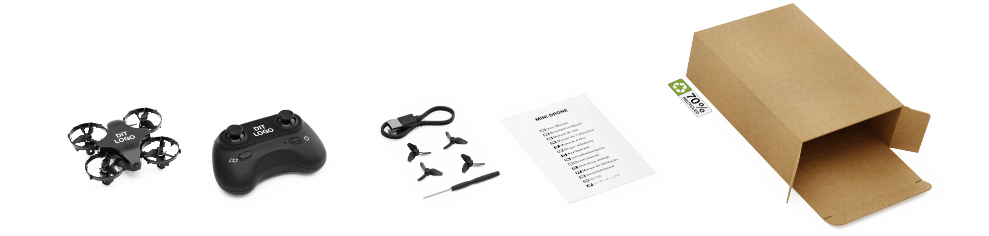 RoHS Dette produkt lever fuldt ud op RoHS direktivet (EU restriktioner for risikable genstande).Minidrone med specialtryk i høj opløsning
