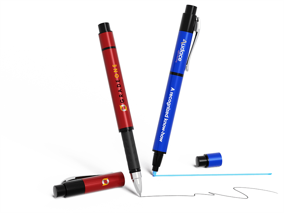 The Accent er med høj kvalitets kuglepen og praktisk highlighter i én og samme fantastiske model. Vi laver dit logo på begge sider af pennen og samtidig på hætten uden merpris. Accent har også en praktisk clip og et komfortabelt greb - alt dette sikrer at den vil blive brugt dagligt, og giver maksimal eksponering af dit brand.