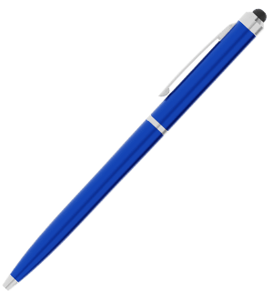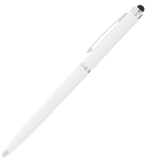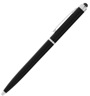 Sleek Kuglepennen ern en yderst praktisk model, der har medfølgende stylus til brug på din touchskærm. Skrivespidsen aktiveres ved at rotere toppen af pennen. Det flotte branding område laves med dit logo eller andet, i digital print. Et fantastisk produkt som kan bruges dagligt, og giver glimrende eksponering af dit brand.