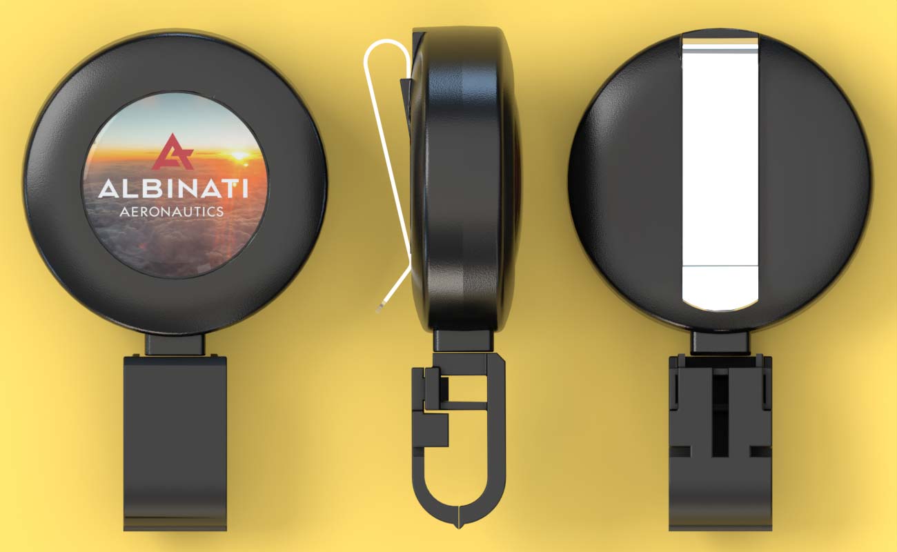 Den udtrækkelige spole har et dedikeret brandingområde på toppen, en clip bagpå og en hage fastgjort til snoren - som nemt kan fastgøres til et hvilket som helst kort, f.eks. et ID-kort eller adgangskort. Selve snoren kan nemt trækkes ud og ind efter behov.