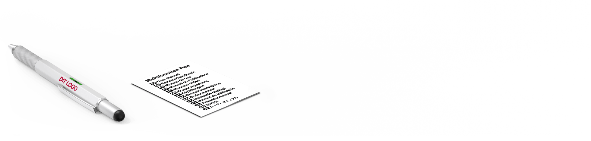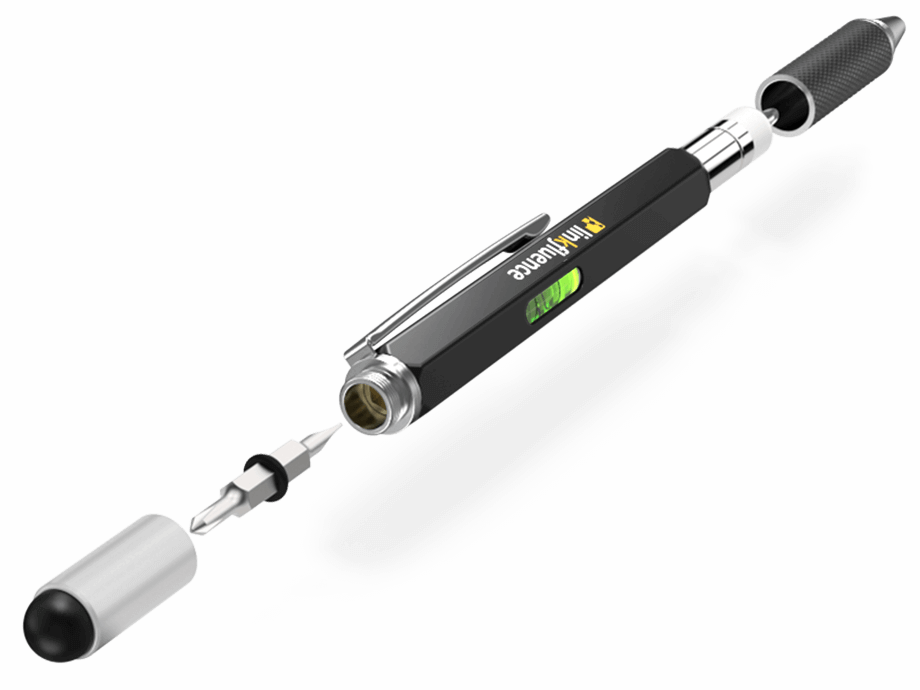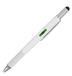 - Kuglepen, vaterpas, lineal, skruetrækker og touch-pen.