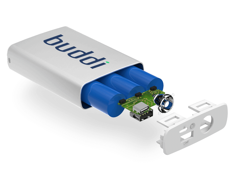 Indgang: 5V/1A, Udgang: 5V/1A. Batteritype: Lithium-ion