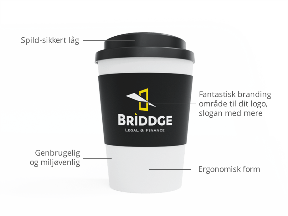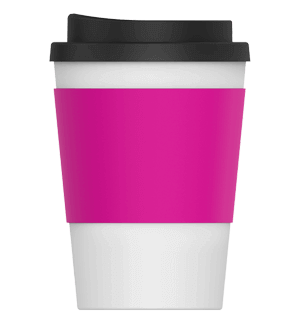 Det generøse brandingområde på silikonekoppens sleeve holder dit logo i centrum. Denne eksponering kombineret med vores præcise og levende tryk vil gøre dit design uundgåeligt og til et ægte blikfang. Du kan også vælge farven på koppens hylster fra vores udvalg af 8 fantastiske farver, så det passer til din virksomheds farveskema og får dit logo til at poppe! Den klassiske hvide krop og det sorte låg giver den perfekte baggrund for at vise dine muligheder for brugerdefineret branding.
