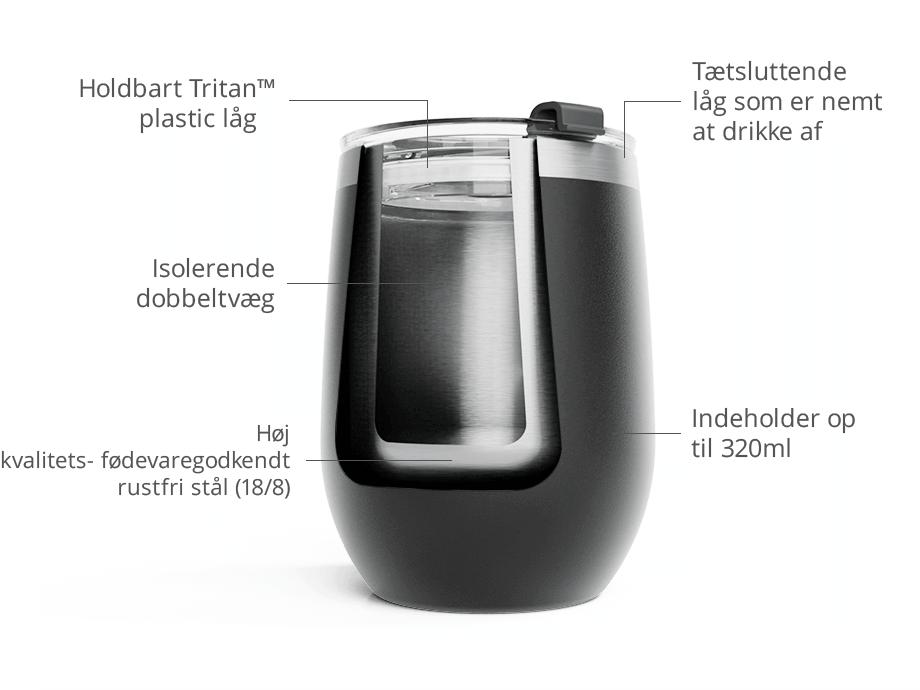Den dobbeltvæggede isoleringsteknologi sikrer også, at din drik forbliver kold eller varm i 8 timer, med et BPA-frit Tritan™ easy-sip-låg, perfekt til de lange pendlerture, bilture eller dage på kontoret.