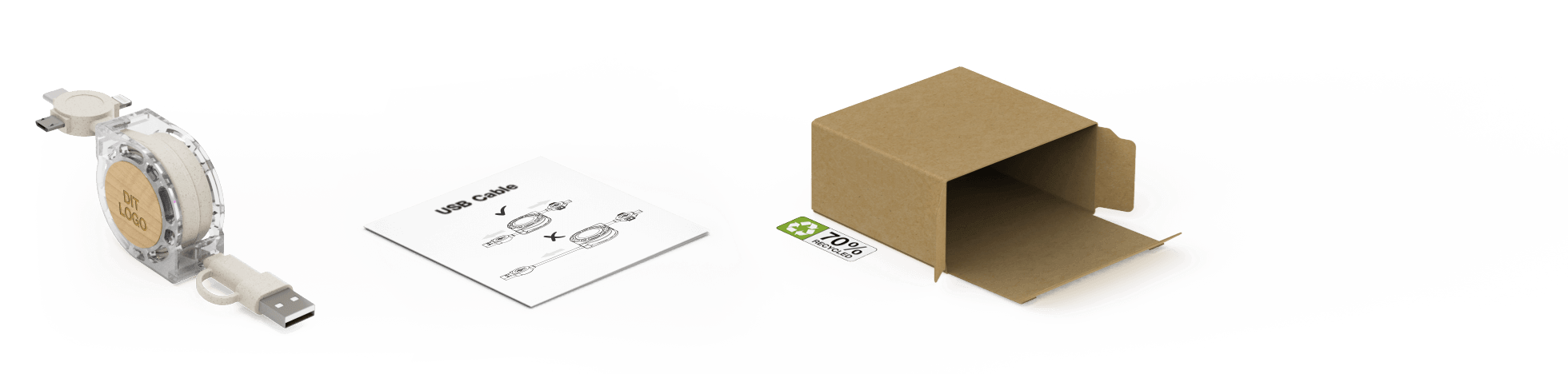 Kablet er fremstillet af bioplast fra hvedestrå og tilbyder en miljøvenlig løsning, der er i overensstemmelse med dit brands bæredygtige praksis. Printområdet er lavet af FSC-certificeret træ for at fortsætte bæredygtighedstemaet. Udfyld et hurtigt tilbud i dag for at modtage en personlig prisliste og begynde at tilpasse dine Motion Wood-hubs!