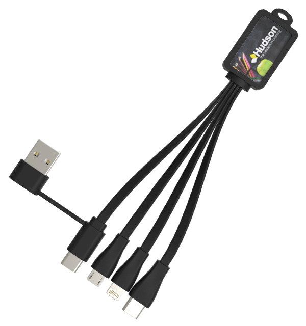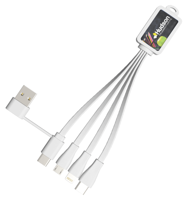 Multi USB-opladeren kan tilpasses fuldt ud for at vise dit brand, øge brandbevidstheden og holde din virksomhed i tankerne hos dine kunder eller kundeemner. Printområdet på Multi-opladerens hovedhub kan fototrykkes med dine brandbilleder i høj opløsning, logo, slogan og meget mere!