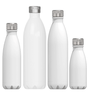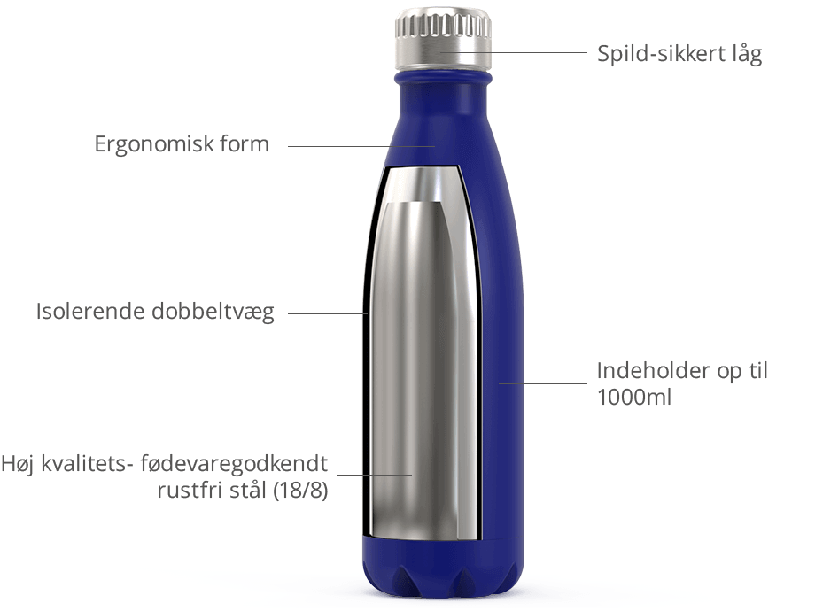 Vi tilbyder også 2 års garanti på alle brandede vandflasker af metal og plast.