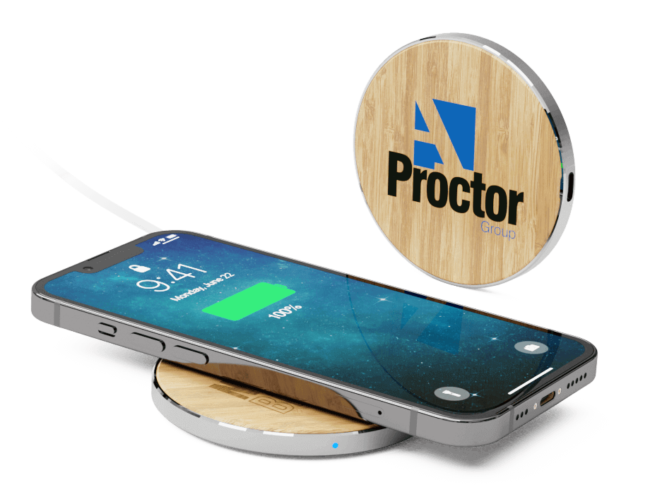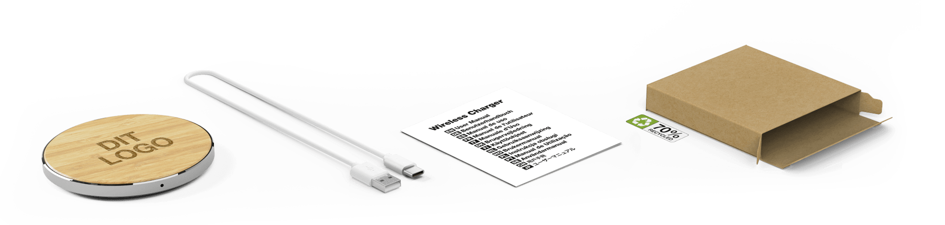 Den naturlige finish af bambustræ skaber en slående kontrast til levende brandbilleder, der bringer din virksomhed i overensstemmelse med miljøvenlige værdier. Vælg vores individuelle navngivningsservice for at skabe personlige trådløse opladere til onboarding af kunder eller medarbejdere. Alternativt kan du nummerere dine enheder til dataindsamling til din næste messe eller event. Den trådløse ringoplader er også en del af vores nye merchandise-pakker, der er perfekte som gaver til medarbejdere og kunder!